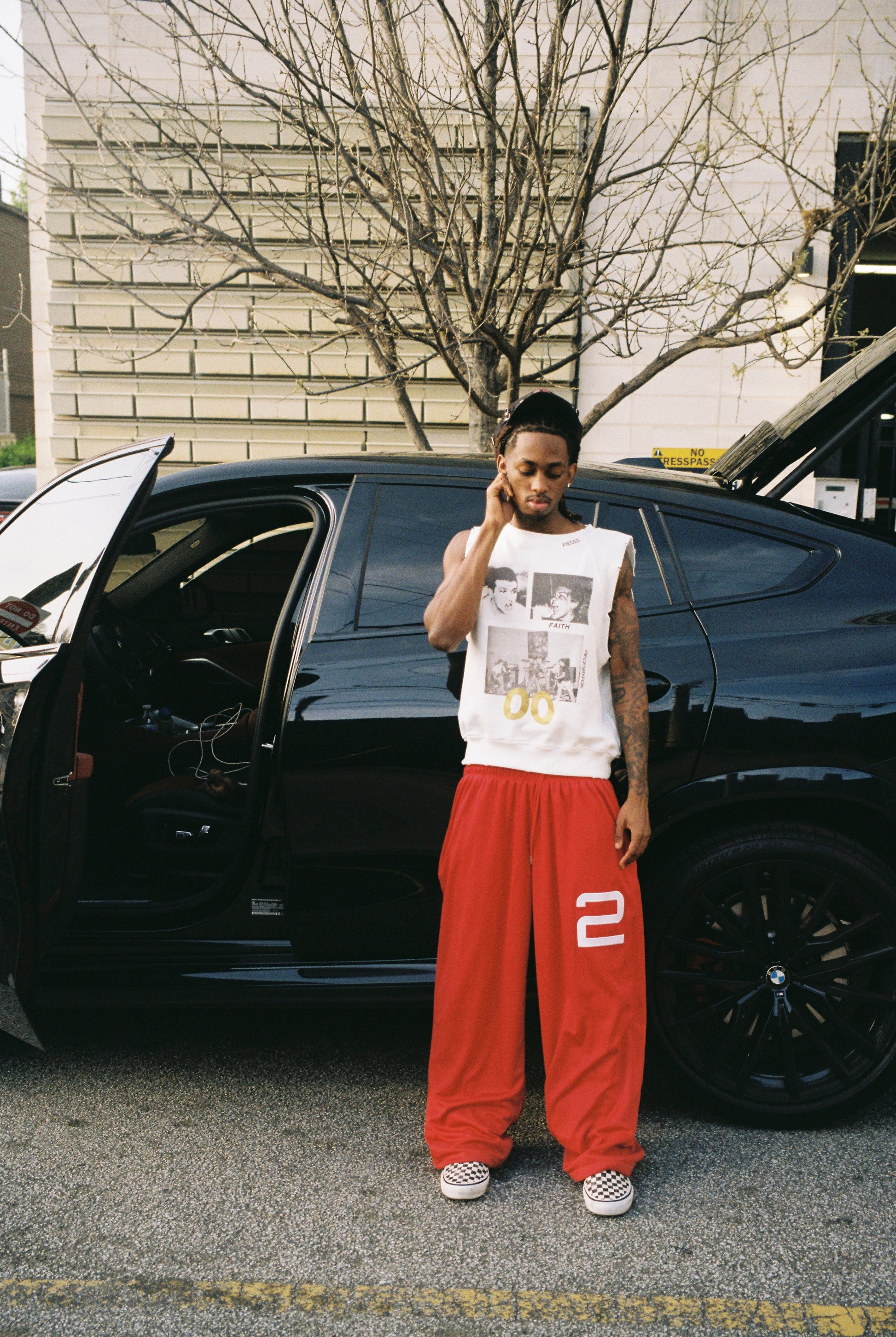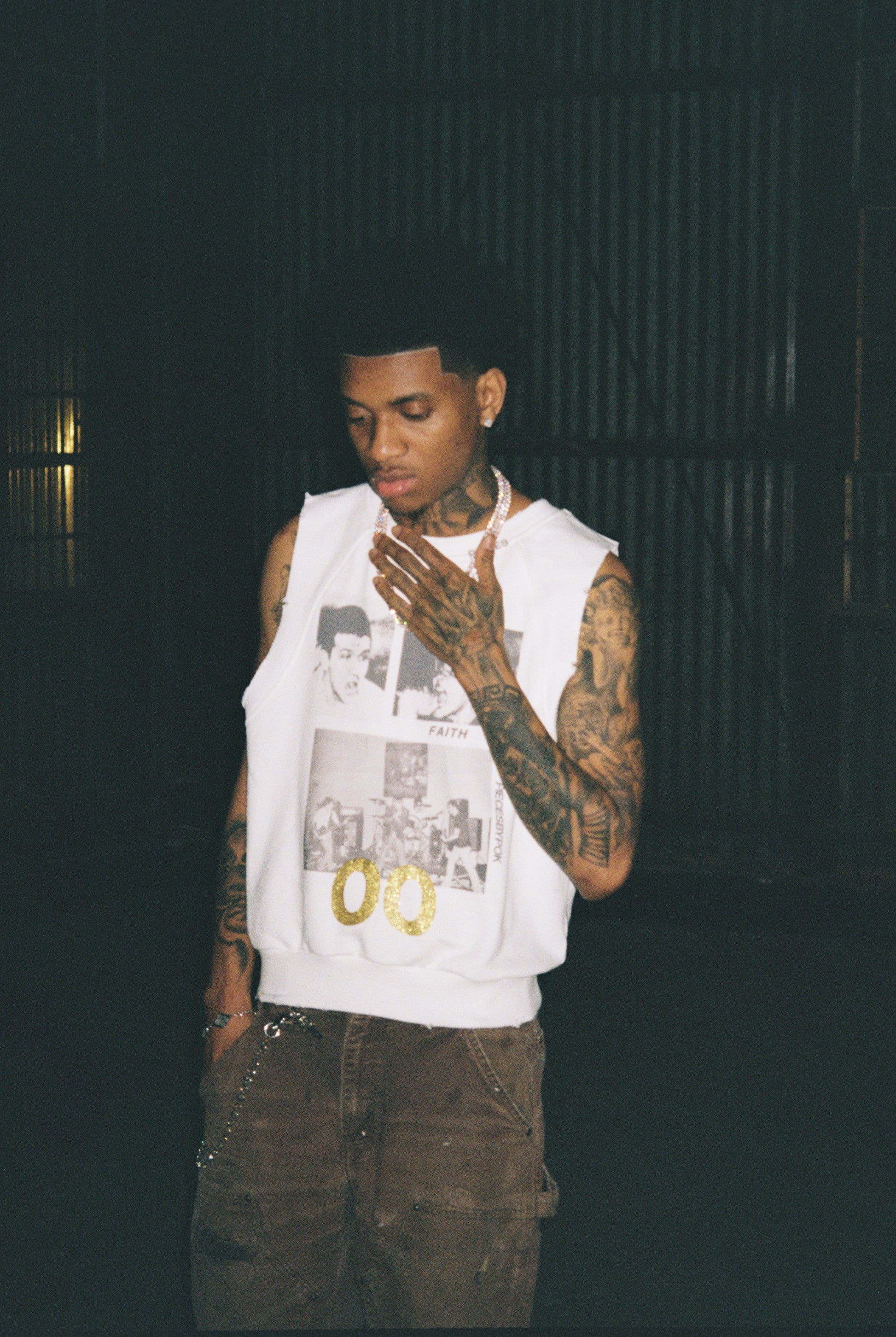 French terry tank top with printing/glitter details.